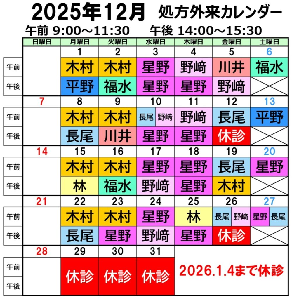 2025.11.0112月の予定をお知らせいたします。